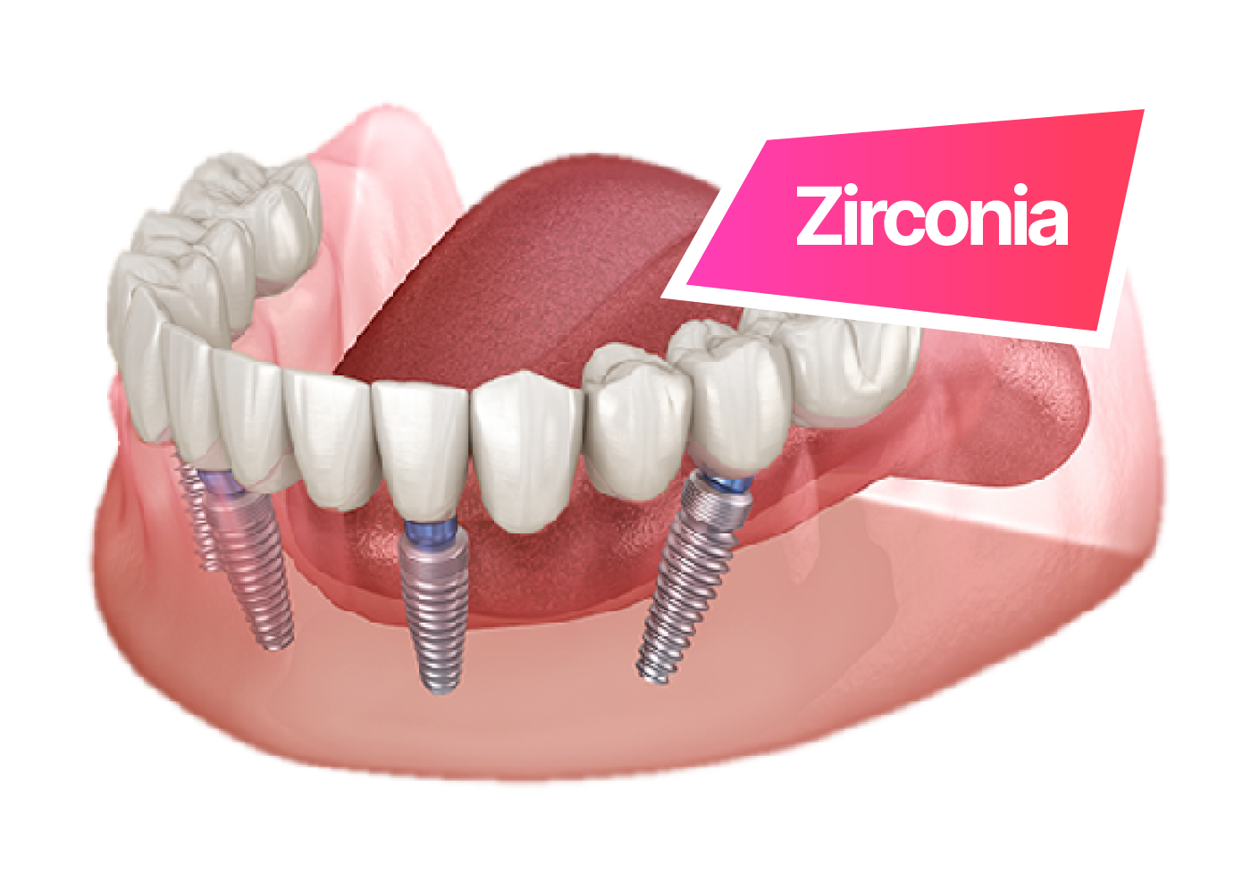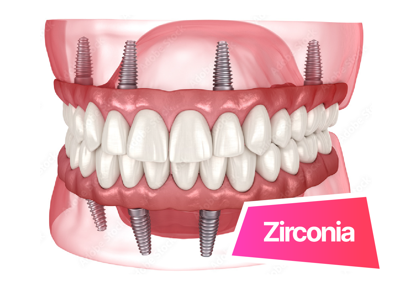 Zirconia All-on-4 is a permanently fixed solution made of the strongest material. It is the most complete solution available to replace an entire row of teeth with the durability to last a lifetime.