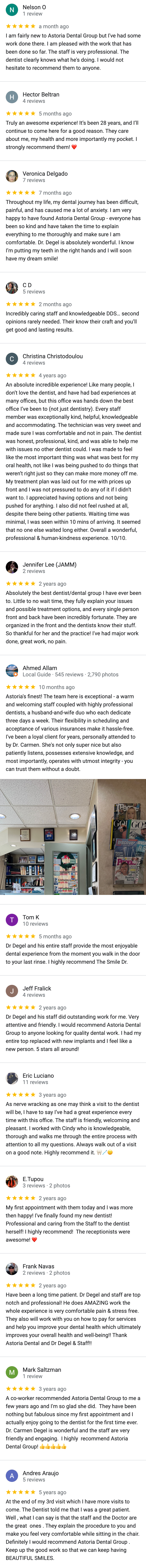 Countless friends and neighbors in Astoria and beyond have chosen Astoria Dental Group to have their dental implant needs completed all under one roof. We are a team of long standing experts in the field of implant dentistry. By staying up to date on the latest technology, using the highest quality materials, and providing exclusive rates and affordable financing, we're able to provide the most comprehensive solution patients in need of a new smile. We don't stop until our patients are 100% satisfied with their new smile.