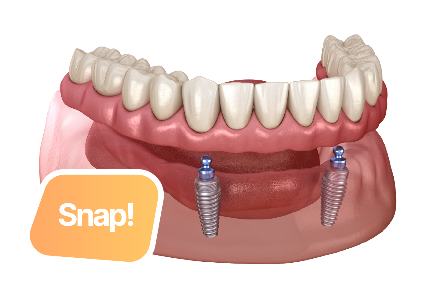 A snap-in overdenture is a superior and cost-effective alternative to traditional dentures. It snaps into place, prevents bone loss, and dramatically improves chewing without the risk of falling out.